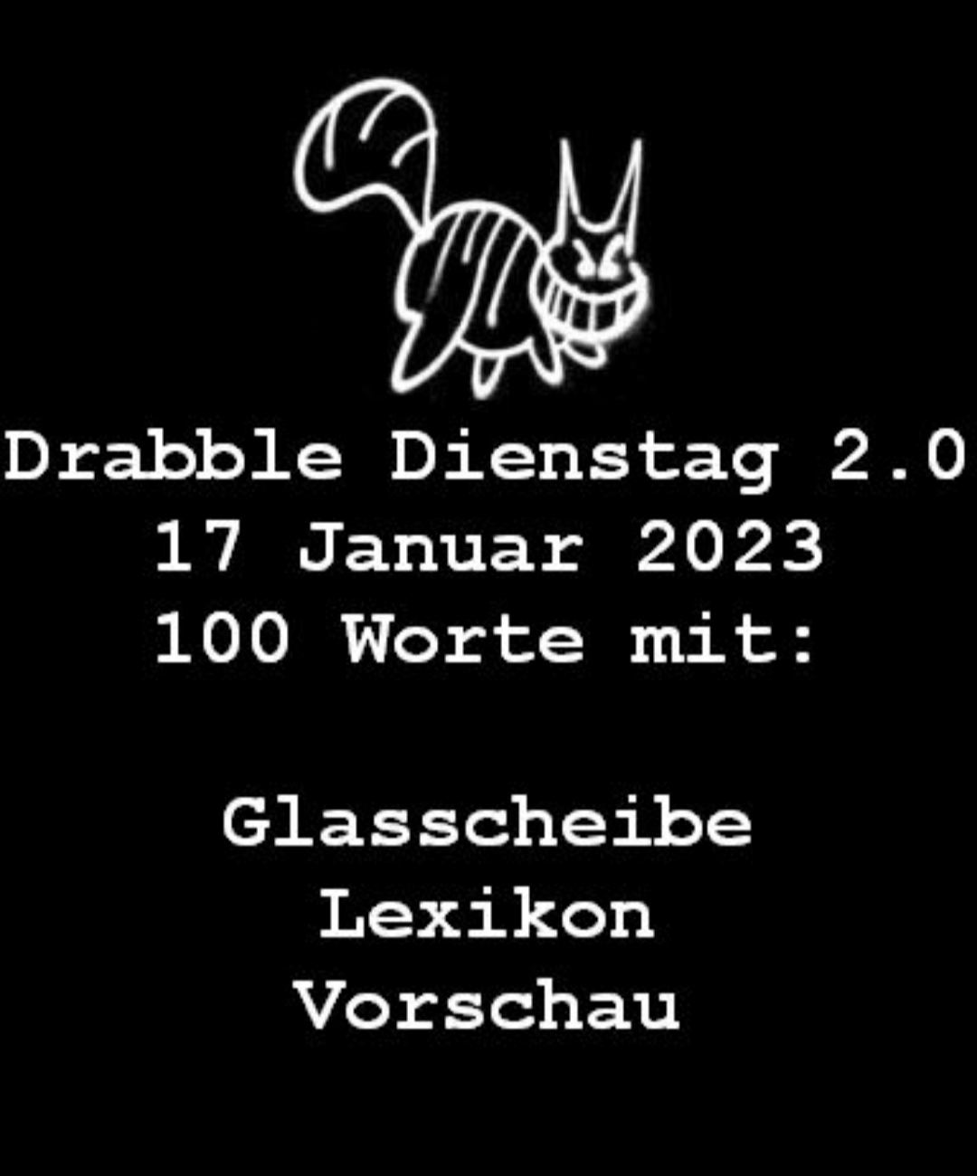 Näheres und weitere Beiträge zum Drabble Dienstag, den Regeln und den verwendeten Wörtern GLASSCHEIBE – LEXIKON – VORSCHAU siehe bei Wupperpostille: