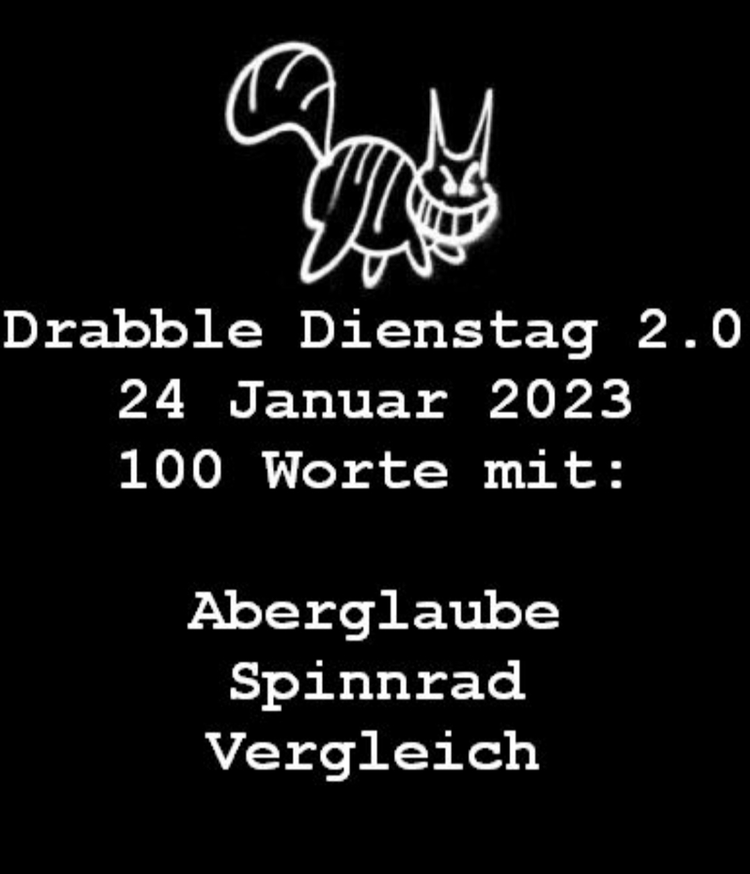 Näheres und weitere Beiträge zum Drabble Dienstag, den Regeln und den verwendeten Wörtern ABERGLAUBE – SPINNRAD – VERGLEICH siehe bei Wupperpostille: